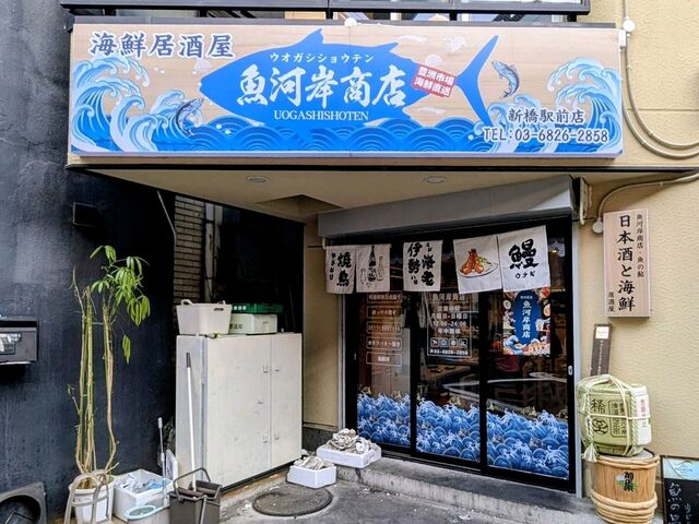 新橋駅すぐの好立地にある魚河岸商店。漁港直送の新鮮な魚介と多種多彩な料理が楽しめる、魚好きにはたまらない大衆居酒屋さんです。