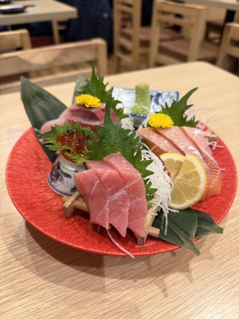 新橋駅すぐの好立地にある魚河岸商店。漁港直送の新鮮な魚介と多種多彩な料理が楽しめる、魚好きにはたまらない大衆居酒屋さんです。 お刺身3点盛りはハマチ・サーモン・マグロにイクラ... 詳細を見る