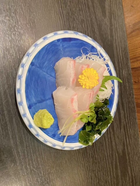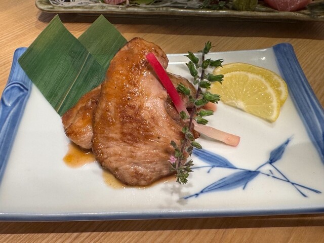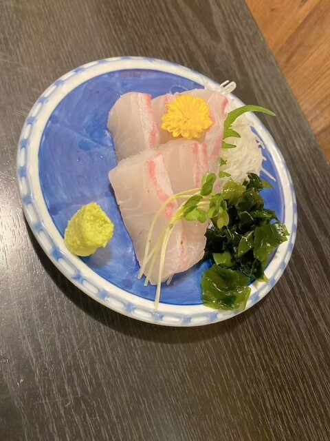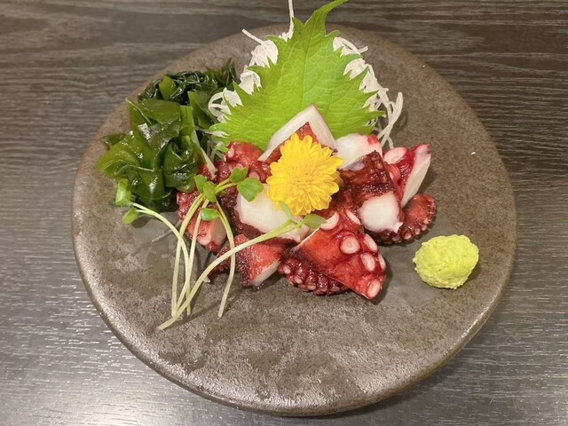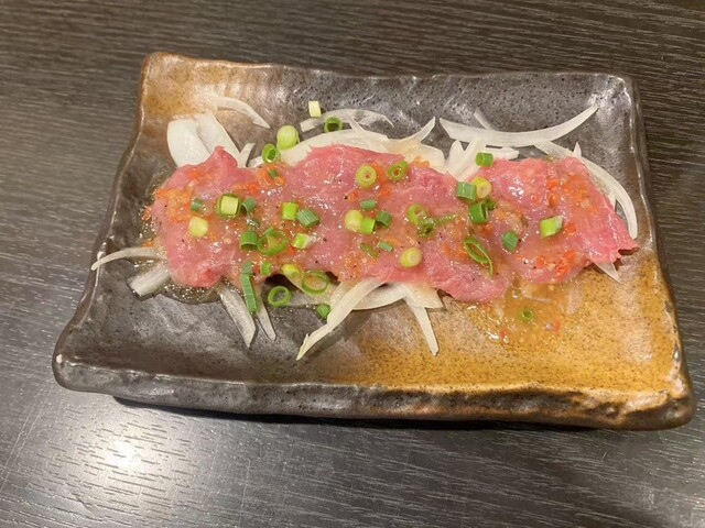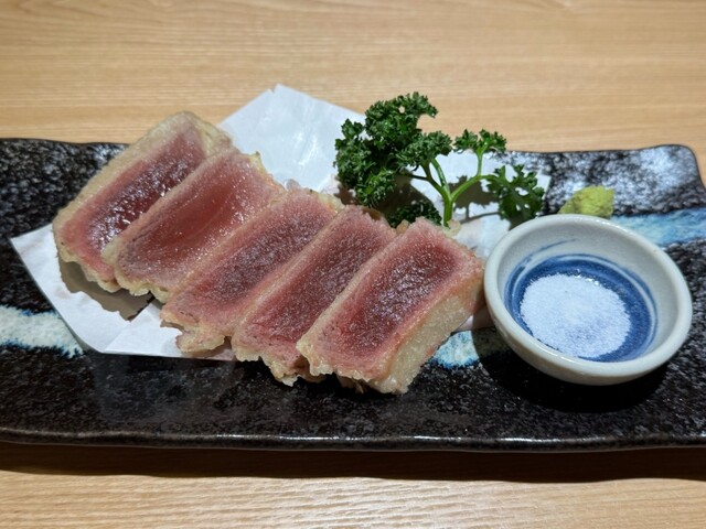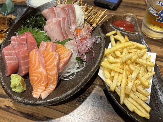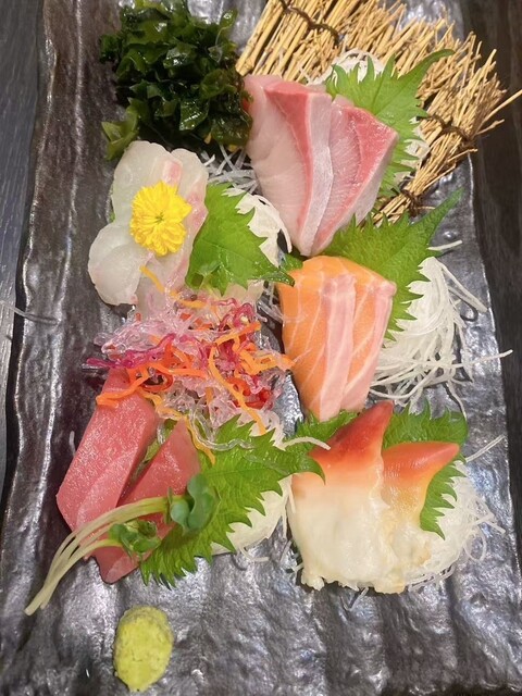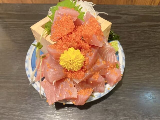まずは刺身盛り合わせ。マグロを中心に、どれも鮮度が良く、...