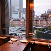 夕日に染まる東京駅丸の内駅舎を眺めながらお食事を