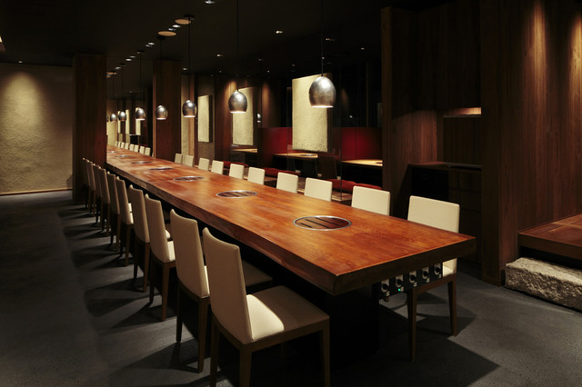 〝春夏秋冬〟四季おりおりに変化する厳選素材と焼肉を楽しんでいただくことがコンセプトの店内は、ザ・ペニンシュラ東京をはじめとする世界的なインテリアデザイナー橋本夕紀夫氏がデザイン。家をテーマに日本の伝統技術、〝左官〟を取り入れ、自然素材と伝統技術が織りなすシックな空間です。モダンで落ち着いた空間の中、厳選焼肉をご堪能ください。