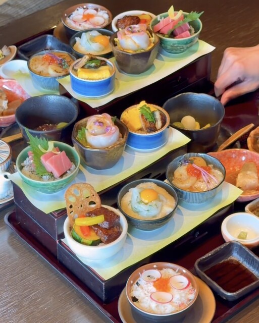 【醍醐味丸ビル】で華やか豪華ランチ!! 会席料理店が本気で作った御膳ランチが素敵すぎた。 『7種の彩りミニ丼御膳』 6,200円(税込) ✅ランチタイムは席料(個室不可... 詳細を見る