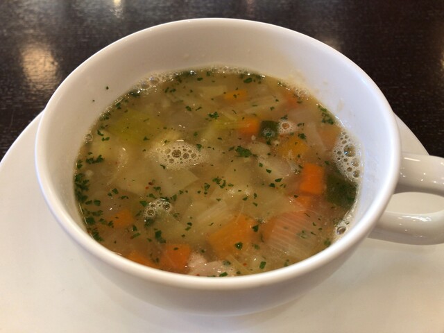 スープはトマト抜きのミネストローネ。フランス語だとポトフかな?