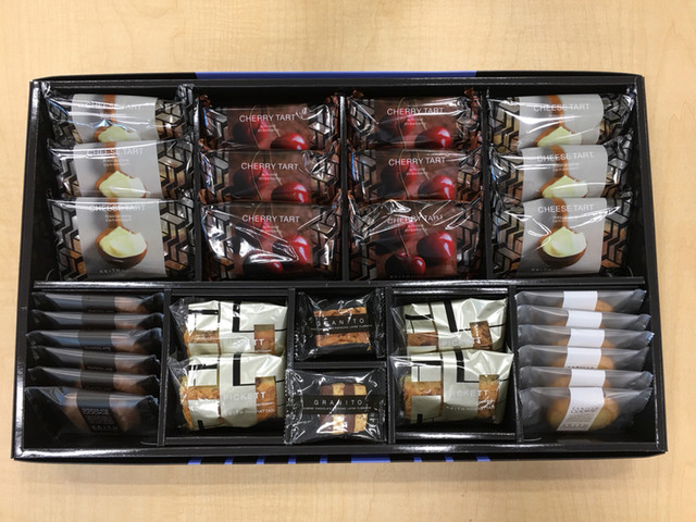 グラニートという名のレイヤークッキーとフロランタン、ピケット、チェリータルト、チーズタルトなどの詰め合わせ。