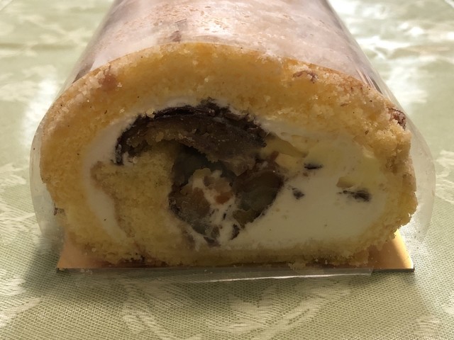 マロンスフェリカルは、渋皮ごと煮込んだ栗が入っていて、生クリームもさっぱりめで、とても口にあった。最近食べたマロンのロールケーキの中でも一番おいしかった。