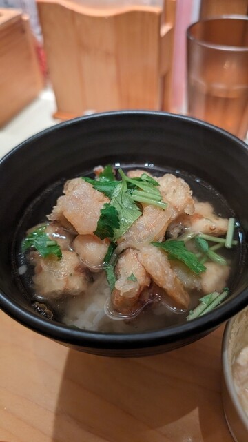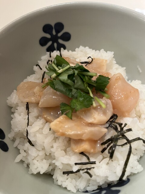 季節メニューの帆立の出汁茶漬け(内税950円)を注文。なかなか美味しい。