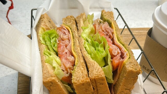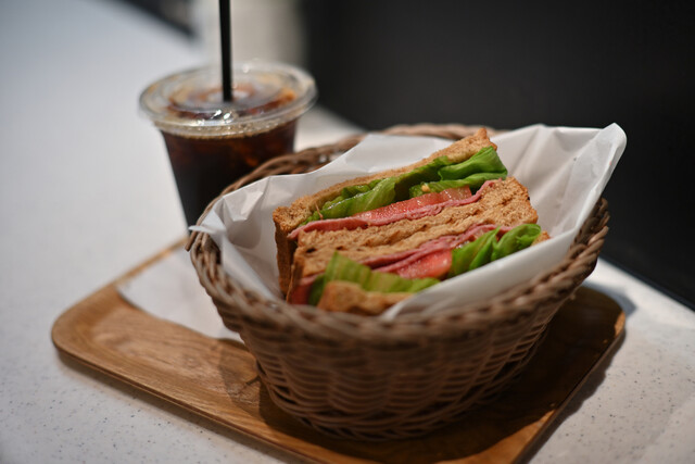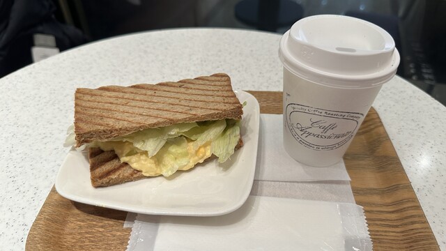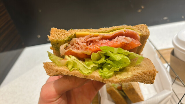 平日18時半頃の訪問。 このあたりは頻繁には来ないのですが、以前見かけた時から”お洒落なお店だな~”って気になっておりました。 ちょうど帰宅時間帯だったからか、店内はけっこう混雑ぎみでしたが…奥にあるカウンター席が2席ほどあいておりました。 本日の注文 B.L.Tサンド カフェラテ(I... 詳細を見る