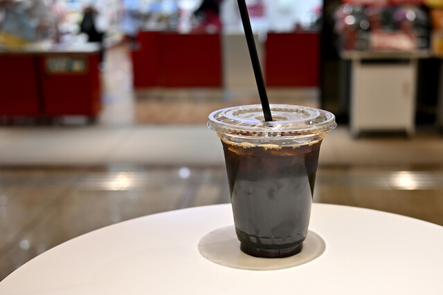 多くの人が行き交う通路にあり、何処となくニューヨークの街角に有りそうな雰囲気のカフェ。