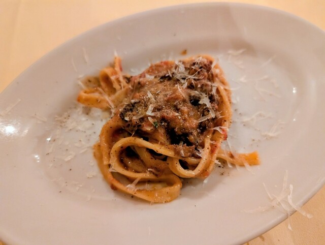 この店は、本当にすごい。 美味しいのに、安いのに、量が多い。 その上、前菜も、メインも、ピザも、パスタも選べます。 メニューも豊富で、選ぶだけでも楽しいです。 そして、ジジイ2人だと食べきれませんでした。幸せ満載のお店です。 今日はこちらで接待いただきました。 また、絶対行く!! っていうくらい素晴らしいです。 コースは、プリフィックスで前菜、ピザ、パスタ、メインなど色々なメニュー... 詳細を見る