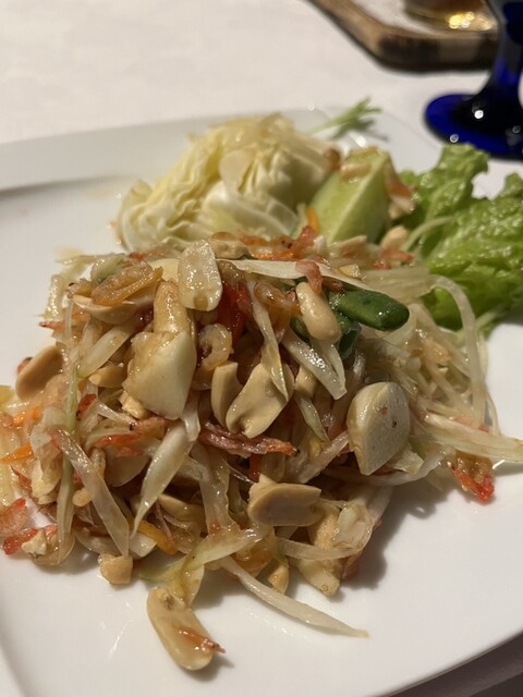 注文した時に『辛さのレベルを抑えましょうか?』と聞かれ️1つレベルにして貰いましたが、逆にちょっと生っぽくなってナムプラーが全面に出てた気がして唯一ちょっと物足りなかった。