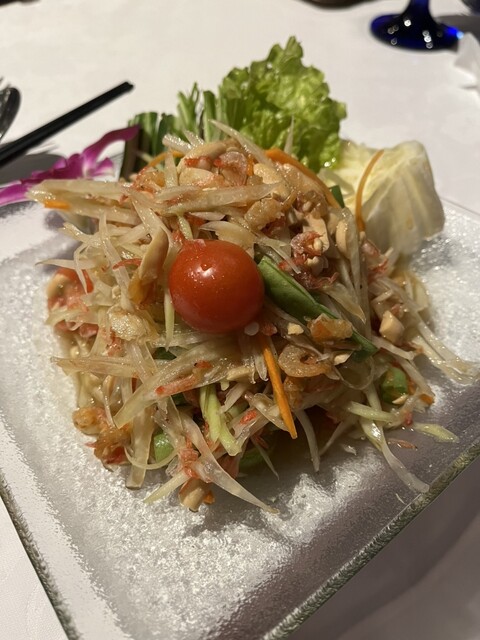 青パパイヤのソムタムは唐辛子マークが3つ️️️の最も辛いレベル。