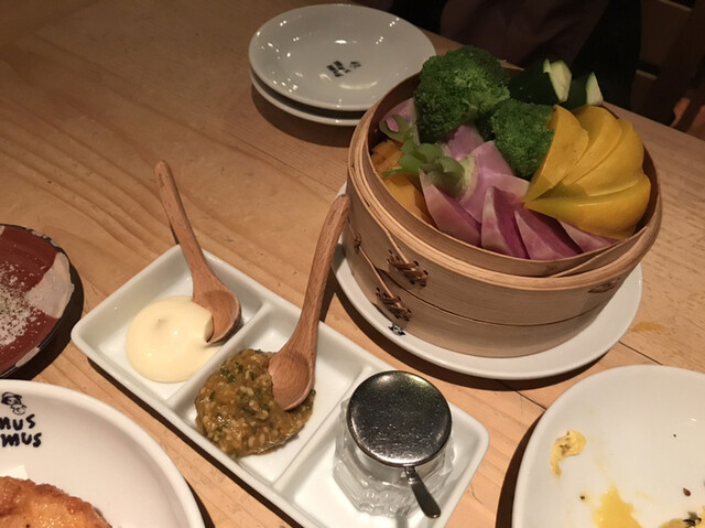 2010-06-0312:13:28postedbyinterbelle-tanaka☆MUSMUS@丸の内東京☆テーマ:グルメ@丸の内東京親友の親友が来日するということで、 jinjin0116さんが選んでくれたお店。 MUSMUS 新丸ビルの7Fにあります。 ネーミングが可愛いですが、 全部の料理を”蒸して”出してくれるお店です。 店内雰囲気 店内から見える外 まずお通し。ゼンマイに... 続きを読む»