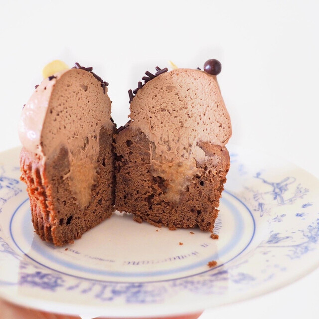 →はりねずみはスライスアーモンド、スプレーチョコクランチ、チョコ生クリームでできてちます。下はキャラメルバナナジャム、ガトーショコラケーキと、ひよこに比べるとかなり甘めでした。チョコレートのもったりしたコクとキャラメルバナナの甘みが舌にしがみつき、人を選ばずトリコにさせる味だと感じました♪迷ったらまずはこれかなぁ…!