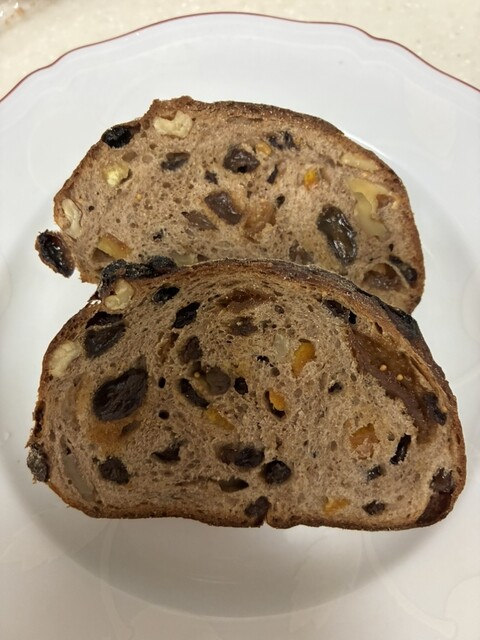 どれも美味しそうでしたが、食パンとして、白いパンを購入し、ついつい隣にあったNo. 1人気のドライフルーツ入りのパンも購...