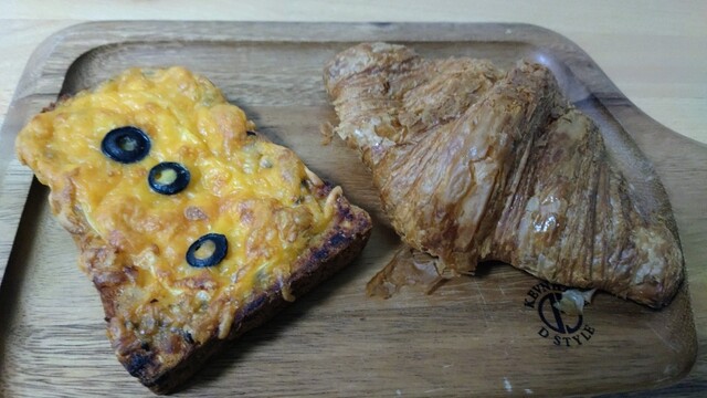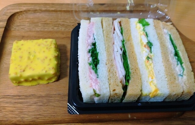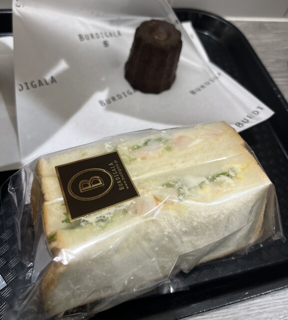 カヌレ、エビとブロッコリーのサンドウィッチを食べました。どちらも美味しかったです。