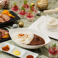 TENQOO定番の「前菜&サラダビュッフェ」に、冷製ローストビーフや合鴨のオードブルが並ぶクリスマス限定メニューです。 メインのお食事は、TENQOO特製ポークカレー または 本日のパスタよりいずれかをお選びいただけます。 デザートにはパティシエ特製のクリスマスデザートをご用意しております。