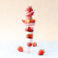 ~国産いちごのパフェ ヨーグルトのブランマンジェ~ 滑らかなヨーグルトのブランマンジェをベースに、瑞々しいフレッシュのいちごや、丁寧に仕込んだ自家製いちごアイスクリームなどを層に重ねました。 ベルガモット香るアールグレイのジュレで、軽やかなアクセントを加えたパフェをお楽しみください。