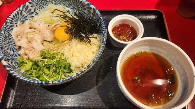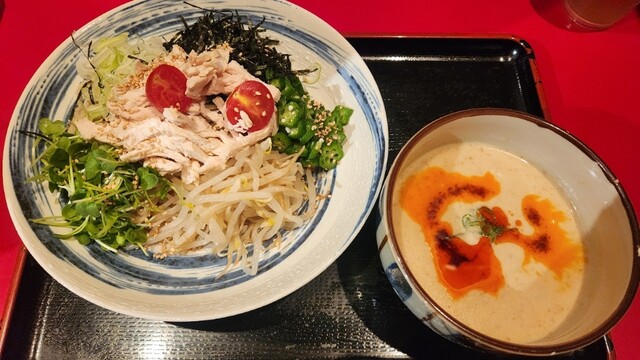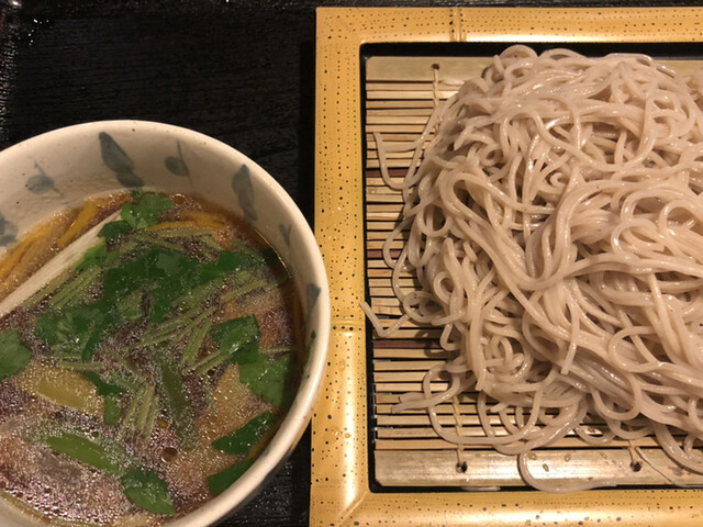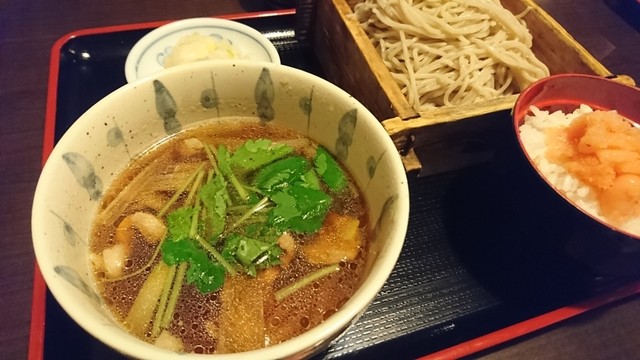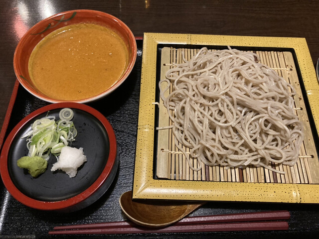 大手町カンファレンスセンターの地下レストランフロアにて蕎麦屋さんを探したらありました。セットメニューが大きく宣伝されており、隔週提供の丼は親子丼の週ですが、気になりましたのは「春夏季節限定」4種の1品「パクチー鶏のつけそば」1200円で、入店致しますと間仕切カウンター席に案内されます。卓上のメニューを拝見し、「せいろ」700円と比較で付加価値を計算して、「大せいろ」800円の2択になり、悩んでいま...