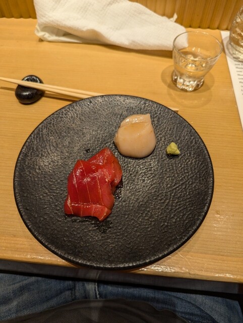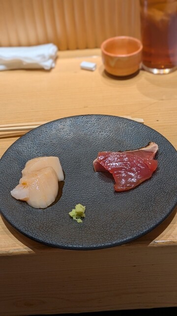 前から行きたいと思っていたまんてん鮨へ予約をしてようやく来られました。東南アジアからのご夫婦と同時の時間帯でカウンターへ着席。噂通り7割は外国の方かと思われます。世界の観光地のど真ん中、当然ですね。
