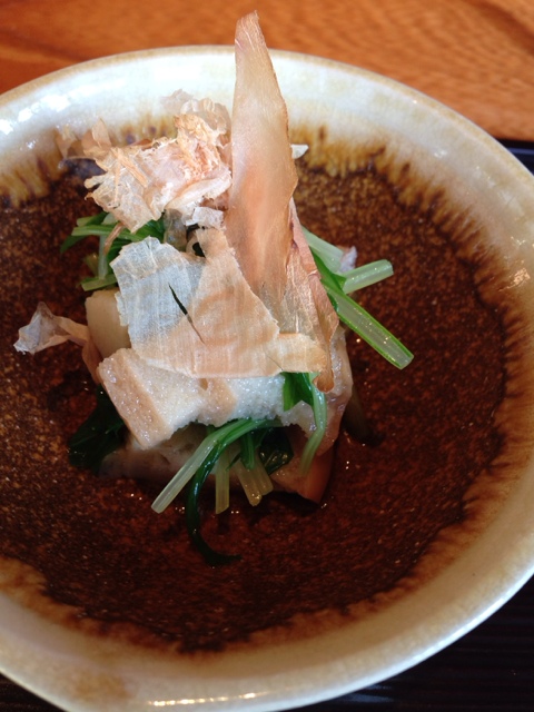 周辺はオシャレなオーブンテラスに囲まれた、オシャレ女子やイケメンやらが溢れて、息を止めて歩かないと窒息しそうと思い息を止めたら本当に窒息したというオシャレエリア 個室の使える使い勝手は良いが照明落としすぎ 素材もよく無難な構成 鮎はサイズも旨みもしっかりしたもので満足