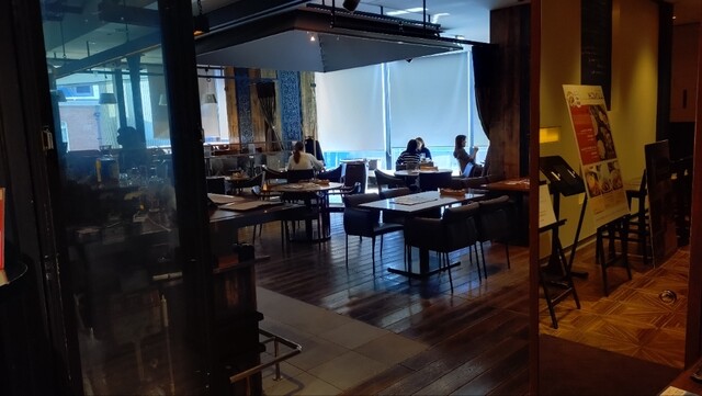 客入りは半分ほどで、店内は落ち着いた雰囲気。テーブル席のみで、席間隔も広く、仕事関係や落ち着いた食事にも使いやすい印象です。