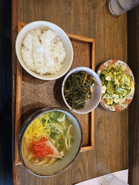 ランチに訪問しました。丸北ビルの6階にある沖縄料理のお店に行きました。沖縄そばと一品料理が付いていて、東京駅あたりの相場をみるとお得なランチかなと思います。ホームページを見ると夜のメニューも色々あり、...