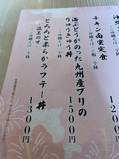 九州・沖縄料理を提供するお店で、メニューには、とり南蛮、肉巻きおにぎり、馬刺しのユッケ、もつ鍋などの他、海ぶどうやソーキソバなどもありました。