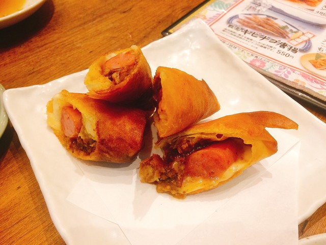 →これは珍しい春巻きです。そして、チーズとミートソースが入ってて、美味しい。