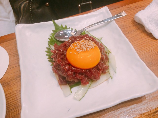 九州・沖縄料理を提供するお店で、メニューには、とり南蛮、肉巻きおにぎり、馬刺しのユッケ、もつ鍋などの他、海ぶどうやソーキソバなどもありました。