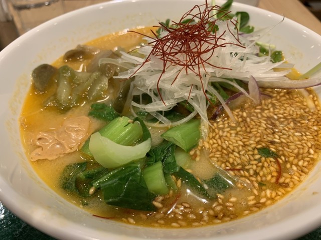 T's たんたん 東京駅京葉ストリート店。 駅中でラーメンを食べれるお店で女性客で行列が出来ています。 入店して知りましたが、肉・魚・卵・乳製品など一切使用していないらしく、動物性食材や化学調味料も不使用というラーメン。 トマトたんたんを注文すると白ごまたんたんにトマトが入っており、思った以上... 続きを読む»