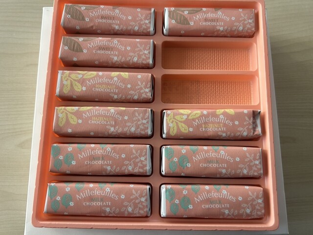 今回はベルンのミルフィユ(スイートチョコレート)を購入しました。香ばしく焼き上げた3層のパイ生地にに3種の異なるク...