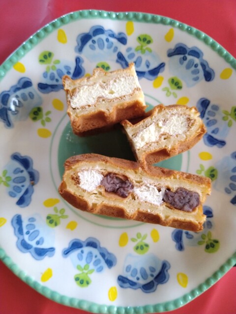 ワッフルをアレンジしたお菓子。