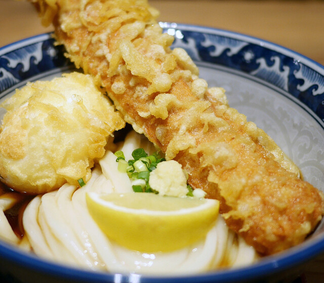 本店はミシュランを受賞しており、当店は食べログ店百名店を何度も受賞しています。名物は「ちく玉天ぶっかけ」。