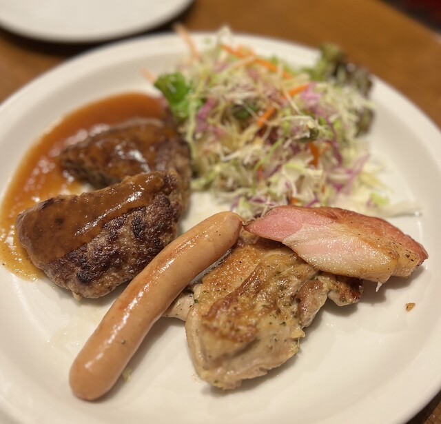 焼き加減が絶妙なヘルシー赤身肉をはじめ、豪快でリーズナズルな肉バルです!調理のひと手間ひと手間まで徹底的にこだわることで「ここでしか味わえないハンバーグ」を作っています!ボリューム満点のコース料理もご用意♪ハンバーグ、牛肉のグリル盛合せ、タパス、サラダもコースに含まれていて、いろいろ味わえます♪肉バルのランチもご用意しております◎