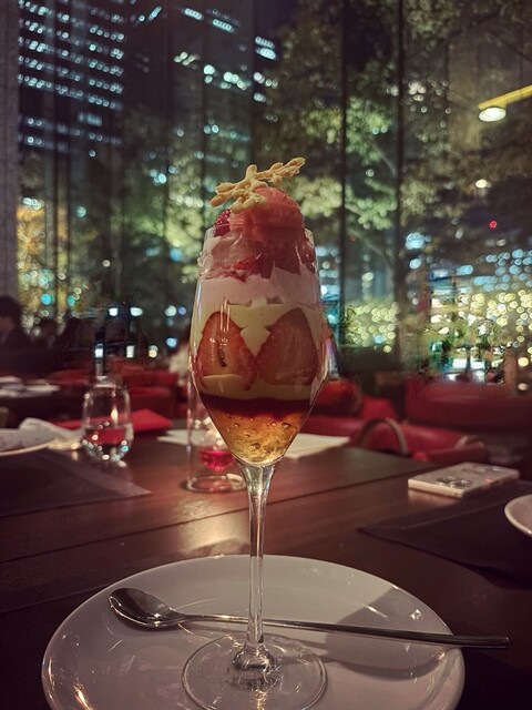 周りのビル群の灯りと庭園に囲まれて、なんかリッチです。