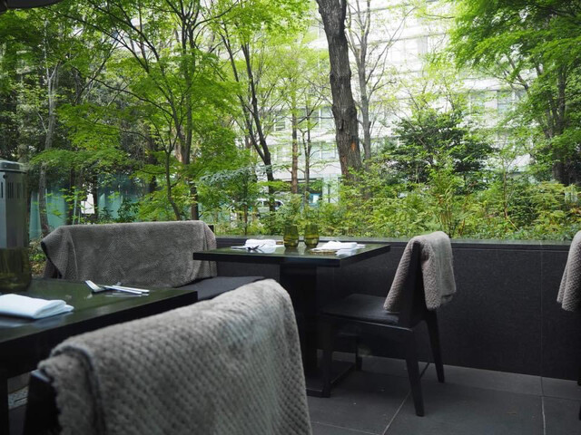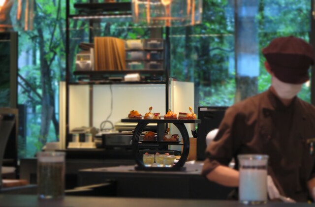 都会の中にある森のオアシスで、ゆったりと寛ぎながらお食事やデザートをお楽しみください。全面ガラス窓の店内席やテラス席からは、四季の移ろいを五感で感じられる、100種類以上の植物で構成された豊かな森を眺められます。ランチ・ディナーともに、フレンチベース料理を中心としたコース料理を2種類ずつご提供。季節の果物をふんだんに使ったデザートセット、料理に合うドリンクやソムリエ厳選ワインもご用意しています。