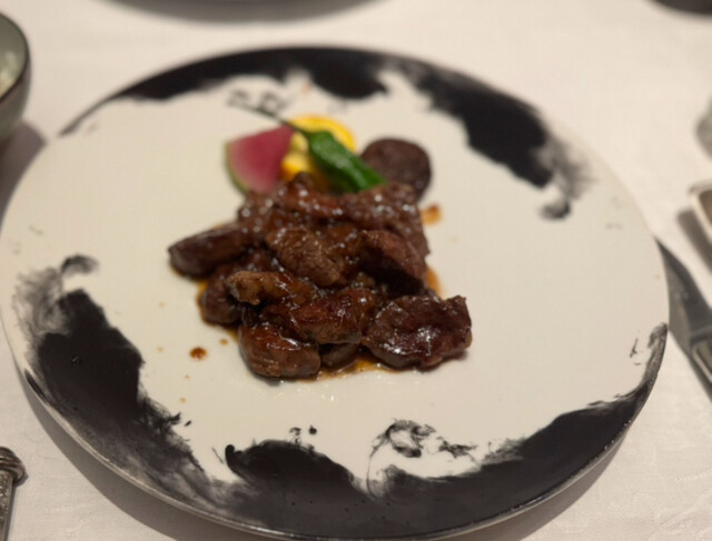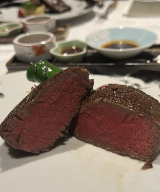 静かな個室でいただくコース。序盤の鮑は柔らかく、香りの立て方が上品。メインのシャトーブリアンは表面香ばしく、中はしっとりで 160gでも重たく感じない火入れ。赤身の甘さを最後まで楽しめた。サービスは程...