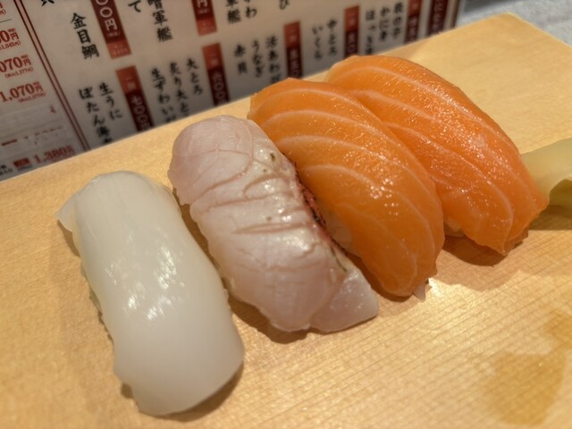 東京駅改札外のグランスタ内にあるお寿司屋さん。 座れるのと立ち食いでは入口が違うようで、私は立ち食いの方に入りました。 注文したのはランチにぎり1,210円。やすい! この安... 詳細を見る