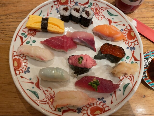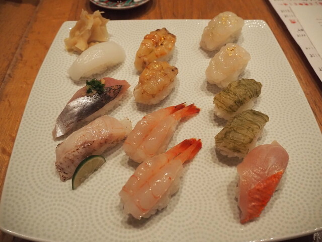 お昼時はメニューが3種のみ、握りが11貫2,970円と、13貫1,870円の2種類、散らし寿司が1,5...