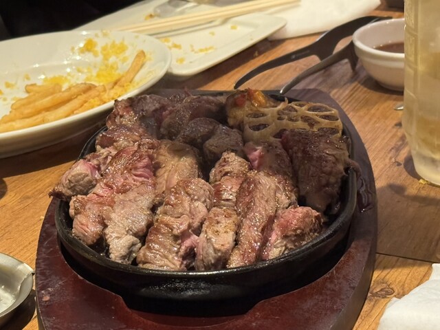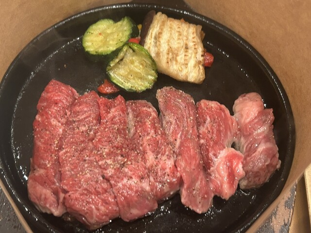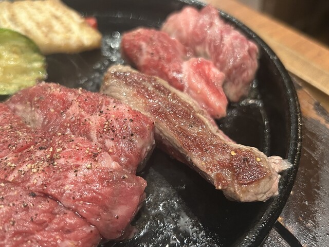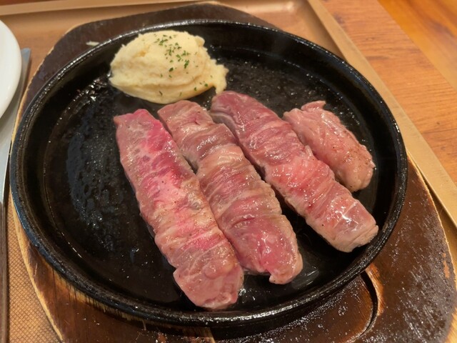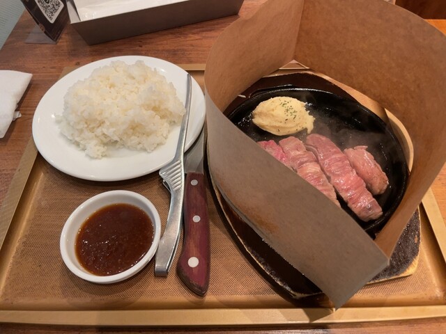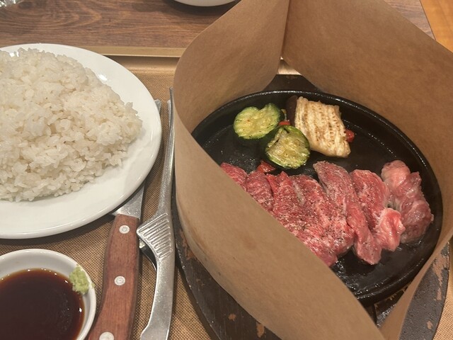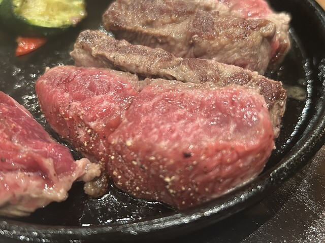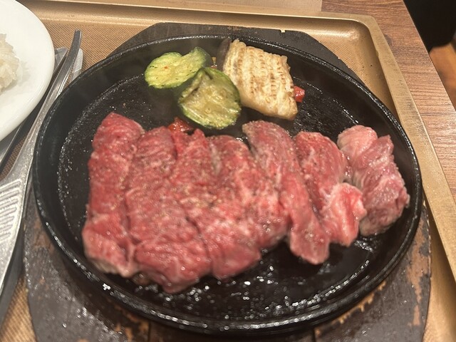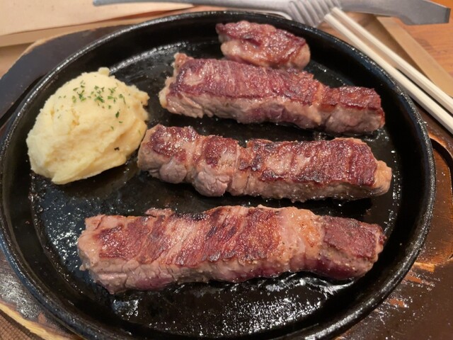 平日の開店とともに入店し、ランチのプライム肩ロースステーキ300gを単品でオーダー。 ガッツリ肉が食べたい気分だったので、ライスとスープのセットはなし。 熱せられた鉄板に、ステーキ肉がびっしり。この見た目にワクワクします。 自分で返して丁度よいように火を入れるとの説明でした。 赤身だけかと思ってしまっていましたが、想像以上に脂もついてました。 しっかり噛みしめて食すといった感じで、満足感... 詳細を見る
