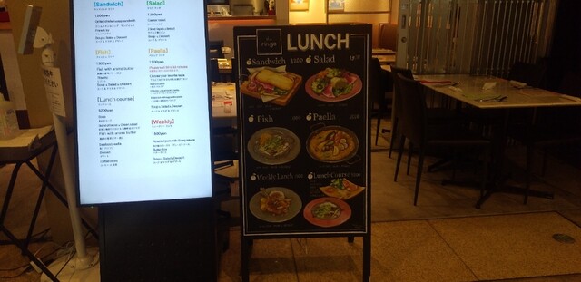 ランチメニューは、パエリア、サラダランチ、サンドイッチ、グリル料理など。
