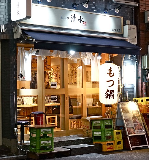 新橋で予約必須の人気店【清水】。その直営店が東京駅八重洲口からわずか徒歩5分の好立地に待望のオープン!自慢の「焼きとん」をはじめプリプリの食感がクセになる「もつ鍋」、新鮮な馬刺しをご堪能いただけます。日本酒や宮崎県直送の芋焼酎など八重洲店ならではのこだわりの一杯を、雰囲気あるコの字カウンターでお楽しみください。仕事終わりにサク飲みや、同僚となどお気軽にお立ち寄りください。まずはお電話ください。