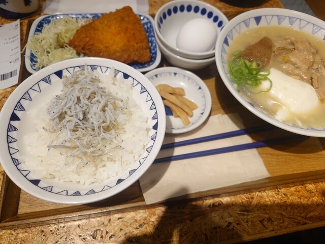 大手町OOTEMORIのグルメストリートにある豚汁専門店。休日は休みが多いゾーンの中、日曜日でもやってます!てか、行列できてる。。。 ごちとん豚汁定食(869円)+しらす生玉... 詳細を見る