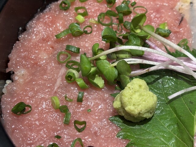 ランチにしてはちょっとお高い感じはするが、東京駅だし近大マグロだし、まあお試しに食べてみよう〜。メニューはいろいろあるがランチ限定のバラちらしを注文。