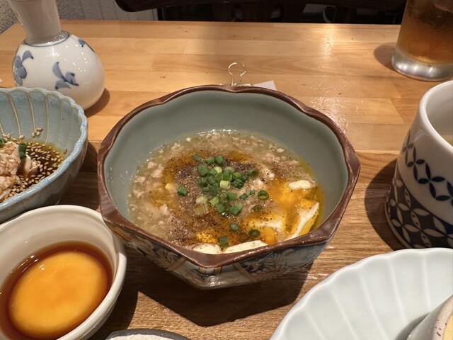 【空間】 大手町の地下の蒸籠が積み上がるカウンター空間。店内は狭めながら、木の温もりとドライフラワーが調和し、おしゃれで落ち着ける雰囲気です。 【料理】 前菜の「じゃがいものサラダ」からすでに一味違う。厚みのある巨大な鶏皮揚げは甘辛ダレと胡椒が香ばしく、ビール泥棒。〆の名物「鯖といくらの土... 詳細を見る