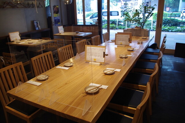 中心のテーブルと奥にカウンターがあるようですが、ほとんどの席が予約で埋まっている人気店のようです。