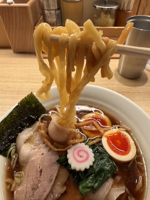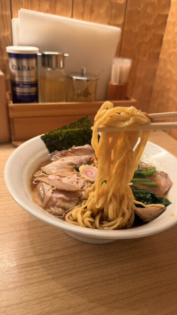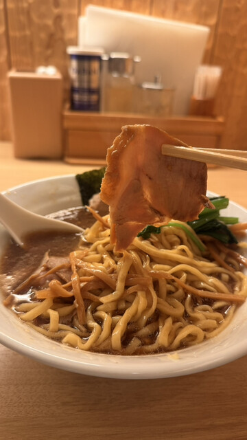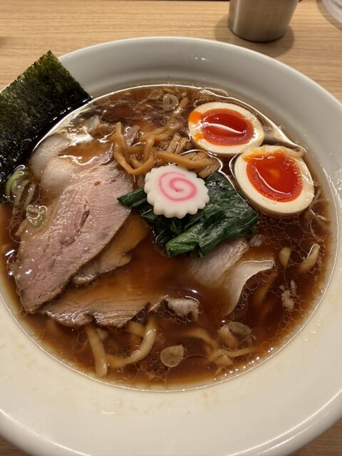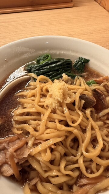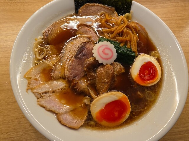 豚ガラ、背脂に上質な鶏ガラを加え長時間煮込んだスープ。仕上げに生姜をたっぷりと使用することで、深みがありながらすっきりとした味わいのある生姜の効いた中華そば。特性麺は喉ごしがよく、旨味の強い腕肉をスープでじっくり煮込んだ自慢のチャーシューも絶品です!