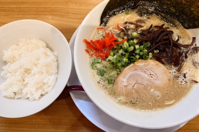 カウンター中心の店内は狭さゆえの熱気が漂い、豚骨の芳しい香りが食欲をかき立てる。ほどなくして丼が目の前に置かれた。まずはスープをひと口。白...