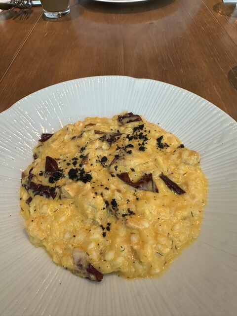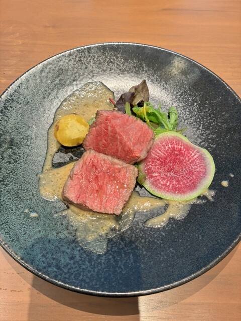 スペシャリテのリゾットは絶品でした。チーズの風味とトリュフの香りがとても良く。米を一粒一粒感じられる食感で大変おいしかったです。メインでは、宮崎牛をいただきました。米を食べて育ったらしく、甘みが強い印...