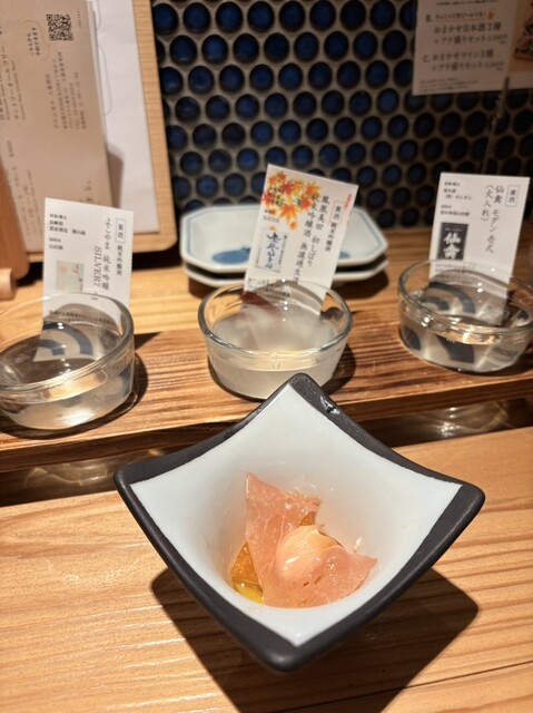 【アテニヨルと言えば】美しいビジュアルの「アテの盛合せ」と厳選された全国の日本酒を取り揃えチョットづつ飲み比べ♪少量サイズのおつまみと日本酒を食べ飲み比べするのが女子には嬉しいちょい飲みセットが【アテニヨルstyle】仲の良いお友達との楽しい時間に是非ご利用ください。。。